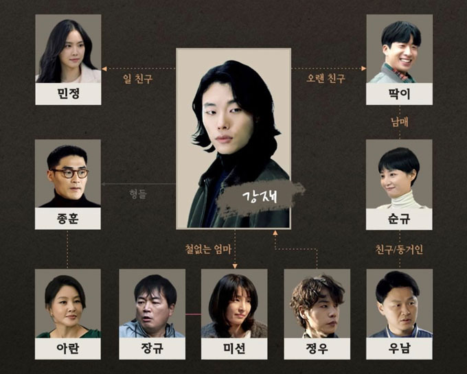 류준열은 부자가 되고 싶은 역할 대행 서비스 운영자 강재 역을 맡았습니다. 강재는 가난의 유전자를 벗고 더 높은 곳으로 올라가기 위해 위험을 감수하며 지름길을 찾아 헤맸지만, 무엇 하나 이룬 것 없이 가파른 오르막길 앞에서 방향을 잃은 인물입니다.